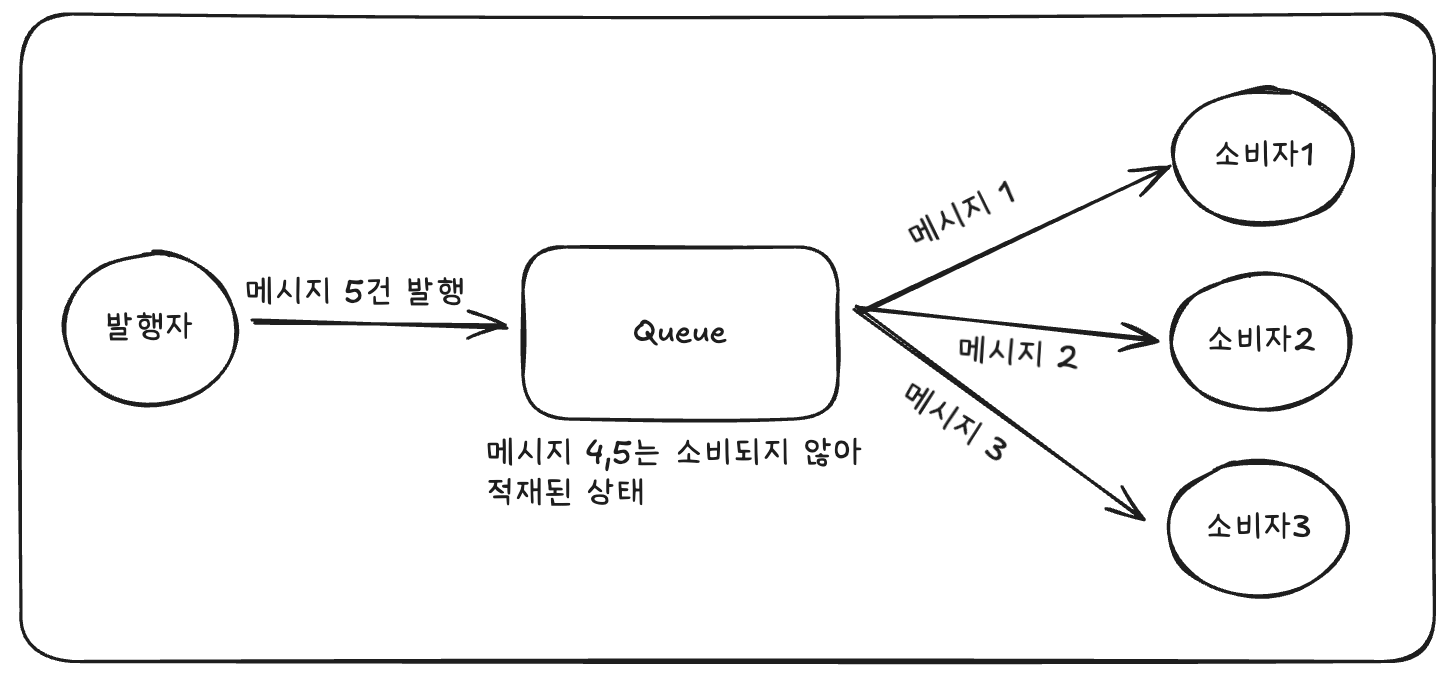 - 메시지 순서 보장의 제약 : 여러 Consumer가 하나의 Queue를 구독하면, 메시지 처리 순서를 완벽히 보장하기 어렵다. 늦게 메시지를 받은 Consumer가 먼저 처리를 완료할 수 있어 순서가 중요한 경우 Consumer를 하나만 띄우거나, 별도의 순서 제어 로직을 구현해야 함