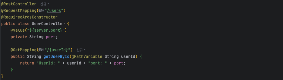 user-service의 컨트롤러에서는 해당하는 api를 생성하고, 로드 밸런싱이 정상적을 동작하는지를 체크하기 위해 포트 값을 같이 반환하도록 했다. 이제 2개의 user-service 포트를 켜놓고, auth-service를 통해 실제 요청들이 정상적으로 동작하는 지 보려고 한다.