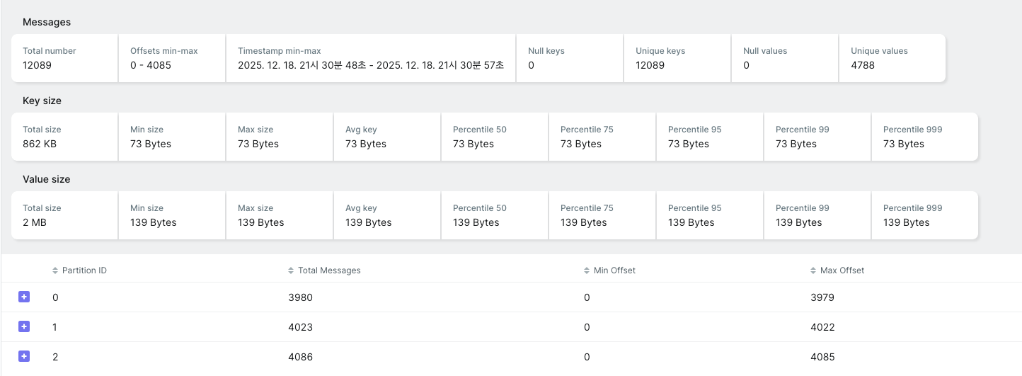 시나리오 상에서 단일 product에 대해서 재고를 차감시키는 로직을 적용했는데, productId를 key로 사용하다 보니 단일 파티션에만 메시지가 집중되는 문제가 발생